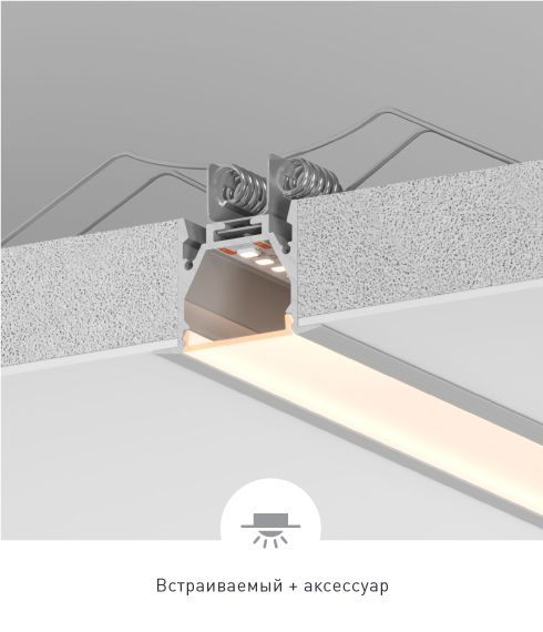 Серия профилей с шириной световой линии 23,5 мм и различными вариантам монтажа.