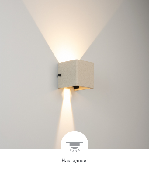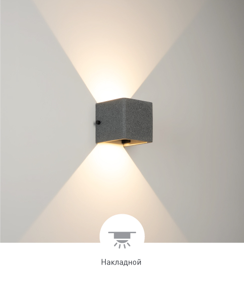 Настенный светильник создает лучи света, направленные вверх и вниз, с теплым цветом свечения (3000 K) и высокой цветопередачей (СRI>90), подчеркивая рельеф поверхности архитектурных сооружений. Кубический корпус выполнен из бетона и гармонично смотрится на фасадах зданий. Угол каждого из лучей регулируется, чтобы формировать выразительные световые акценты на поверхностях стен. Высокая степень защиты IP65 предотвращает попадание влаги и пыли внутрь светильника, что позволяет использовать его под открытым небом.