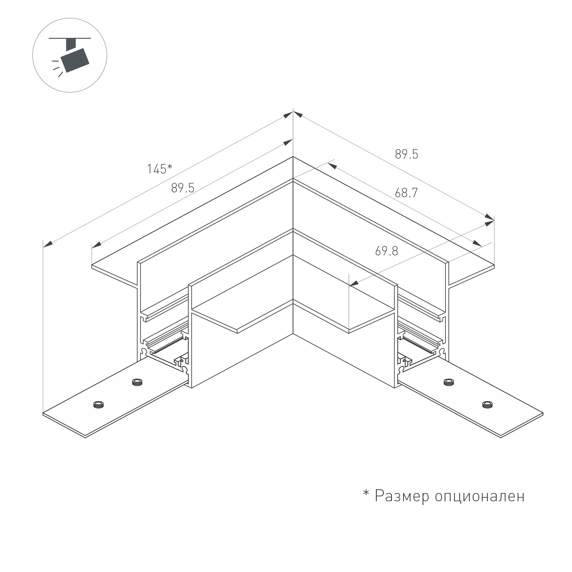 Угловой коннектор для встраиваемого трека MAG-ORIENT. Материал алюминий, цвет черный. Размеры 90x90x70x53мм. Аксессуары для электрического соединения с треком приобретаются отдельно. В комплекте идут механические соединители. Соединение в одной плоскости.