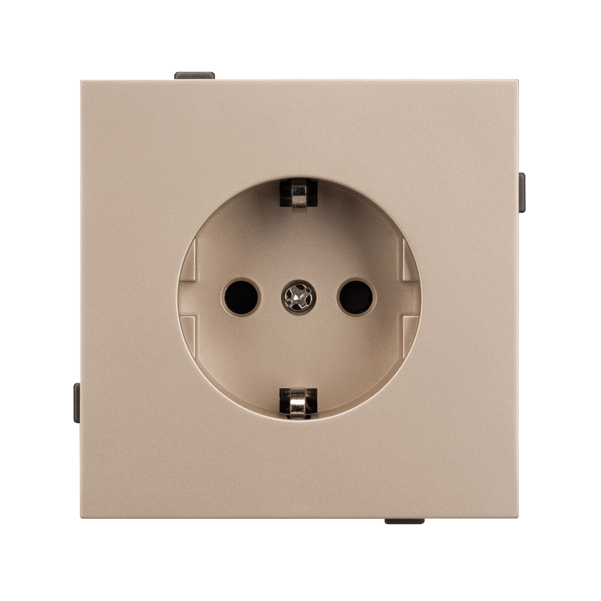 Механизм розетки с заземлением на 1 пост. Цвет - золотой. Без фронтальной рамки. Уровень пылевлагозащиты IP20. Розетка устанавливается в стандартный подрозетник круглого сечения диаметром 60мм.