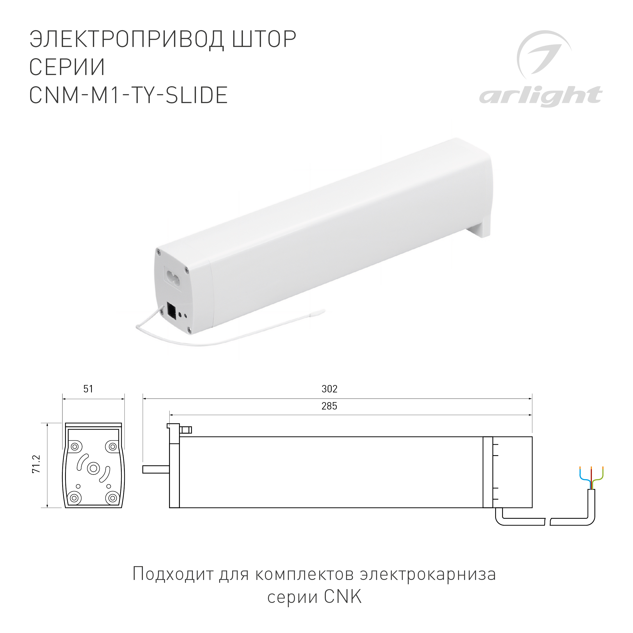 Электропривод для управления комплектами карнизов серии CNK, а также для сбора электрокарниза из комплектующих серии CNT. Управление по Zigbee, пультом и "сухими" контактами.