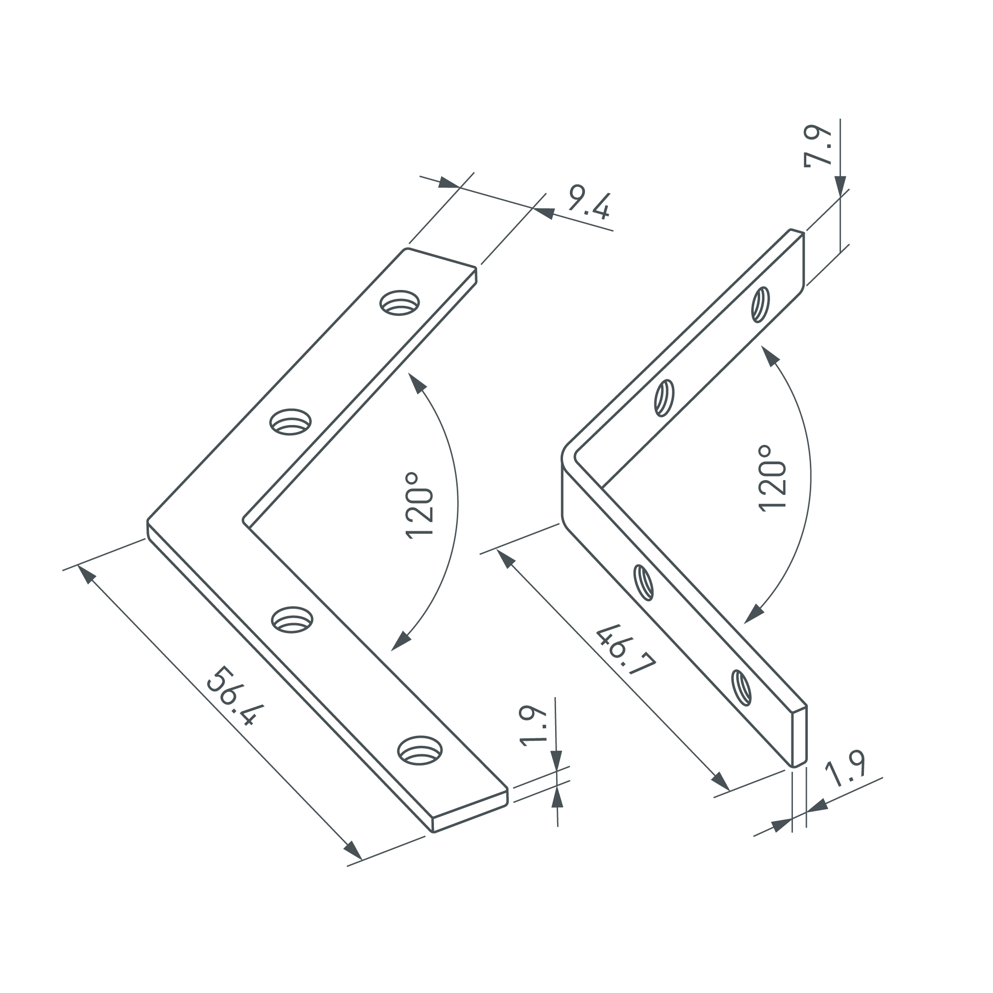 Коннекторы (4 шт. - два внутренних и два внешних) для соединения двух отрезков профилей LINE-6070 под углом 120°. Устанавливаются в паз, фиксируются идущими в комплекте винтами. Применяются при изготовлении светильников сложной геометрии.