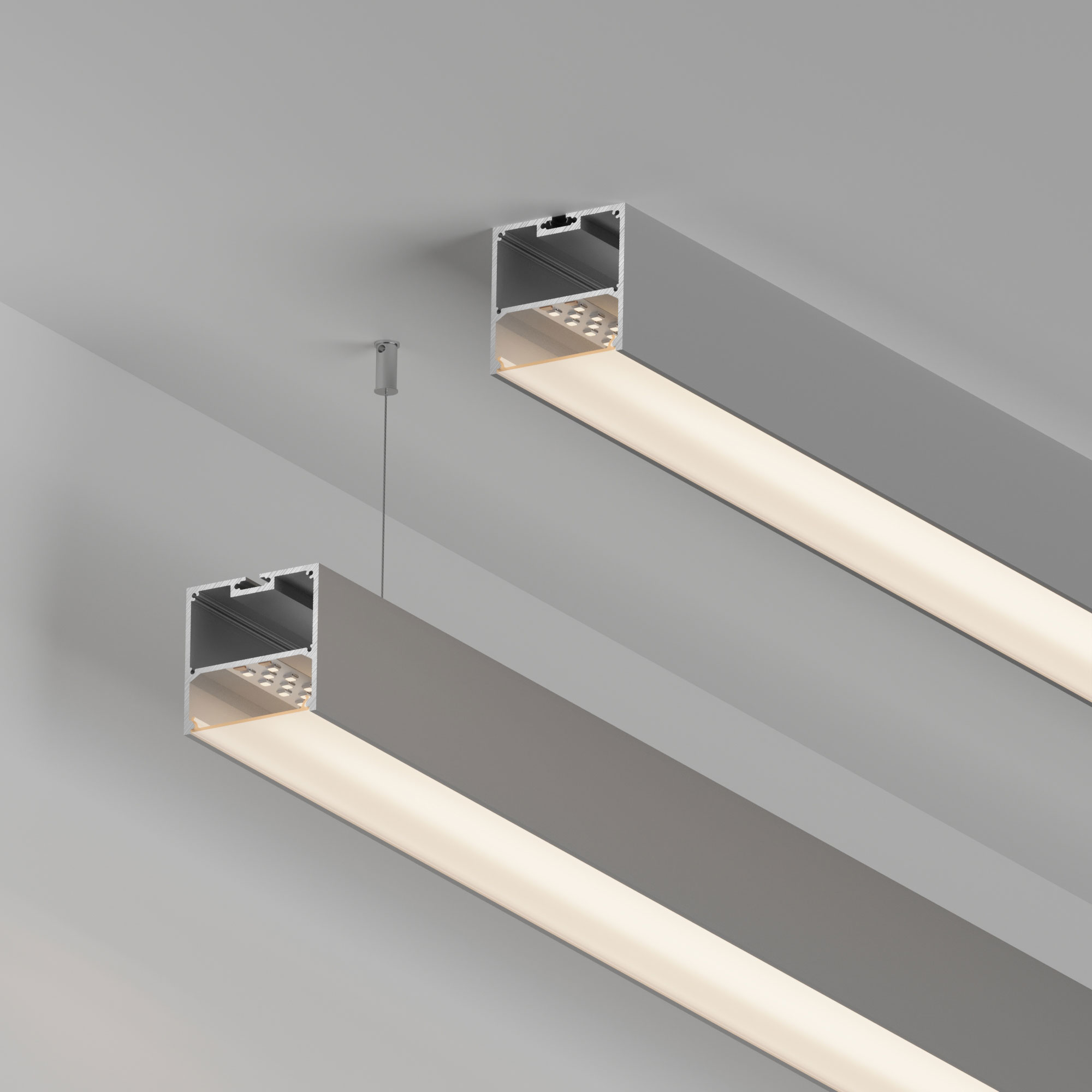 Подвесной/накладной профиль из анодированного алюминия для основной и контурной подсветки помещений, предназначен для установки светодиодных лент или линеек. Габаритные размеры профиля составляют 2000 мм в длину, 50 мм в ширину и 50мм в высоту. Площадка для установки светодиодных лент позволяет использовать ленту шириной до 38 мм и мощностью до 52,5 Вт/м. Это обеспечивает гибкость в выборе светодиодных лент и создает потрясающие световые решения. Экраны, заглушки и другие аксессуары не включены в комплект и приобретаются отдельно. Цена указана за 1 метр профиля. Профиль охлаждает светодиодную ленту, продлевая срок её службы и сохраняя яркость, а также защищает от воздействия пыли, влаги и других внешних факторов. Высококачественное анодированное покрытие защищает профиль от внешних воздействий и коррозии. Светотехнический профиль - отличное решение для создания современных световых проектов.