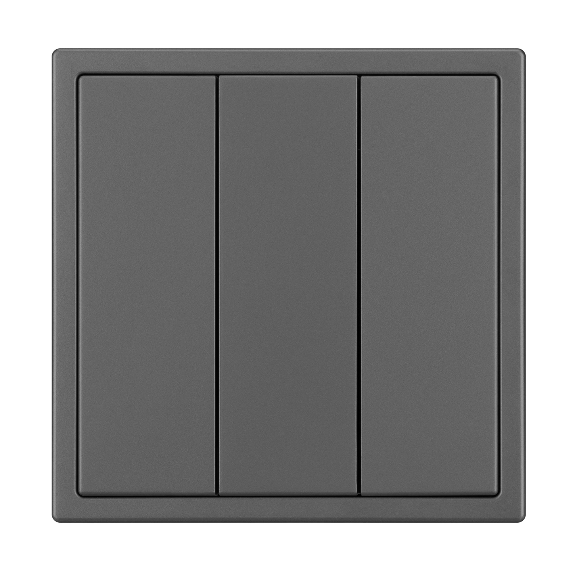 Механизм выключателя света клавишный на 1 пост 3 клавиши (непроходной). Цвет - серый базальт, с Soft-Touch покрытием. Без фронтальной рамки. Уровень пылевлагозащиты IP20. Выключатель устанавливается в стандартный круглый подрозетник круглого сечения диаметром 60мм. Габаритные размеры: длина 71 мм, ширина 71 мм, высота 52 мм. Гарантийный срок 10 лет.