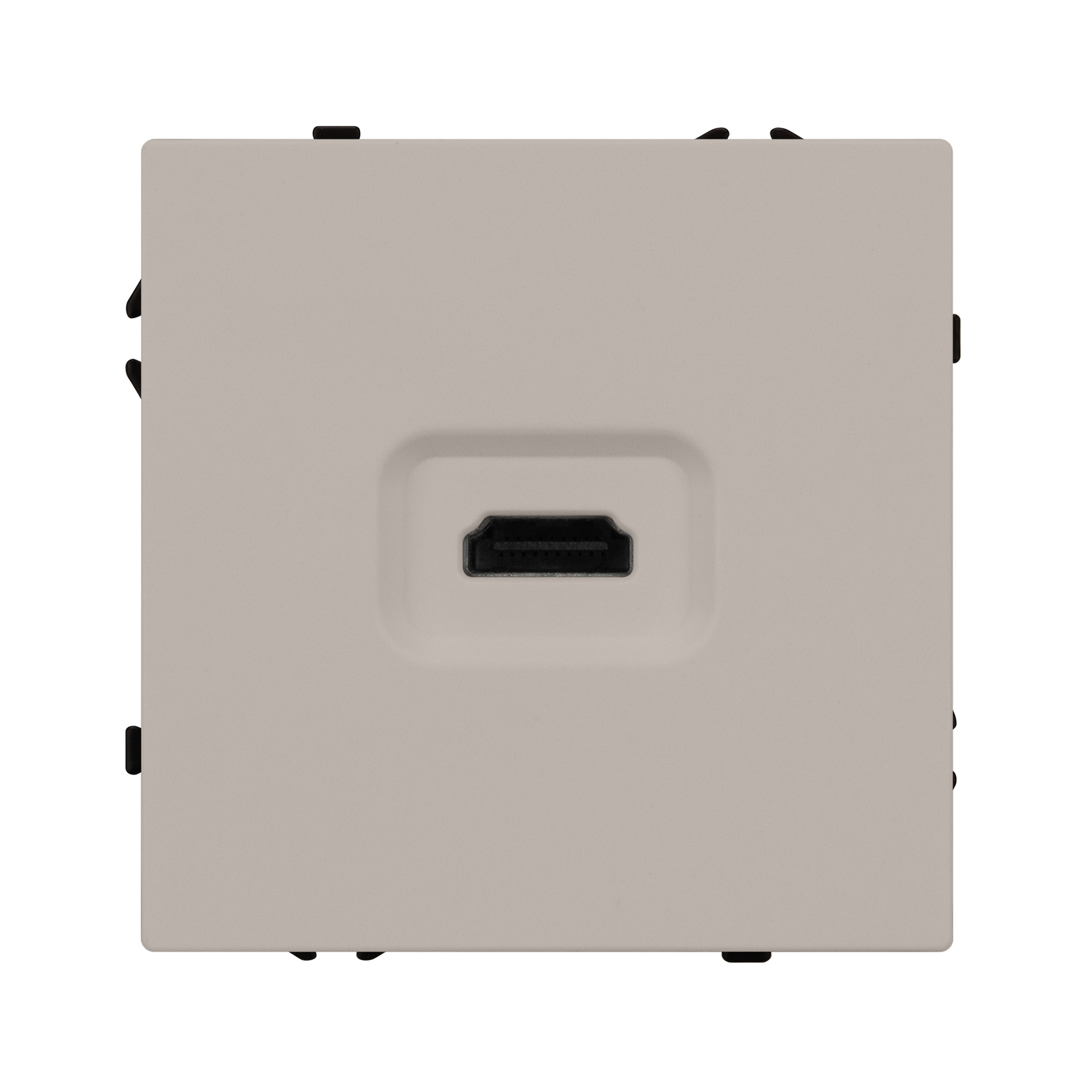 Механизм HDMI розетки на 1 пост. Цвет - кашемир, с Soft-Touch поверхностью. Без декоративной рамки. Уровень пылевлагозащиты IP20. Тип подключаемого разъема - HDMI (Female). Розетка устанавливается в стандартный подрозетник круглого сечения диаметром 60мм. Габаритные размеры: длина 71 мм, ширина 71 мм, высота 42 мм. Гарантийный срок 10 лет.