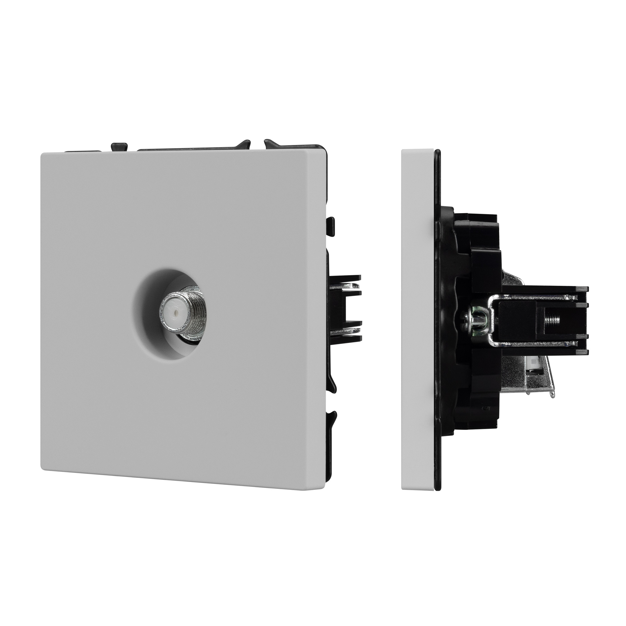 Строгие геометрические линии гармонично сочетаются с функциональностью продуманных механизмов, создавая идеальное решение для дизайн-проектов, где важны как эстетика, так и практичность. Механизм спутниковой розетки совместим с рамками серии NOBE, создает утонченный минималистичный вид. Скрытый тип монтажа позволяет гармонично встроить в интерьер любого современного дизайн-проекта. Видимая часть выполнена из высококачественного пластика цвета никель и имеет Soft-Touch покрытие, что придает изделию приятные тактильные ощущения и стильный внешний вид. Механизм спутниковой розетки предназначена для подключения спутникового телевидения, путем подсоединения коаксиального кабеля к винтовому зажиму. Усиленные распорные лапки двойного захвата надежно фиксируют устройство в установочном подрозетнике круглого сечения диаметром 60мм. Суппорт окрашен в черный матовый цвет и выполнен из металла толщиной 1,5мм, что обеспечивает безопасность и уверенность в установке. На каждой стороне суппорта размещены фиксирующие элементы, позволяющие комбинировать механизмы в системы до 5шт как горизонтально, так и вертикально.