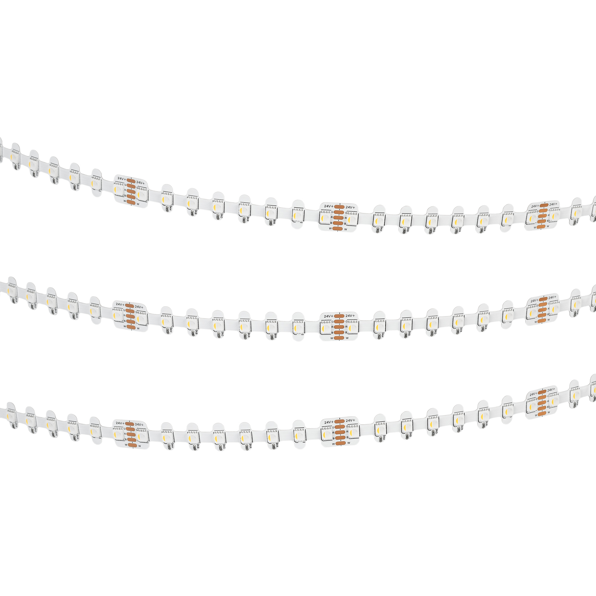 Светодиодная герметичная лента RZ-H96 с фигурной платой в форме волны, легко изгибается на плоскости, IP54 (NANO - защитное нанопокрытие). Светодиоды SMD 4040, 96 шт/м, белая плата шириной 12мм, скотч 3M. Цвет RGB + ТЕПЛЫЙ 3000 K, индекс цветопередачи CRI>90, угол 120°. Питание 24V, мощность 12 Вт/м (60 Вт на 5 м). Размеры 5000x12x2.2 мм. Мин.отрезок 83.3 мм, 8 светодиодов. Цена за 1 м.