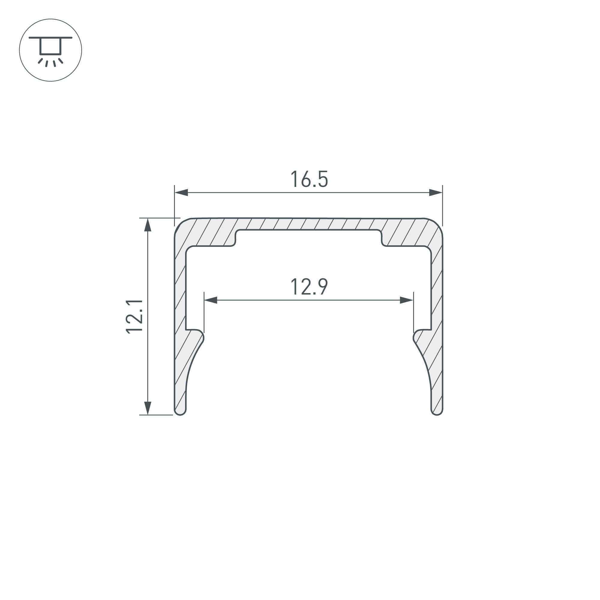 Профиль из анодированного алюминия для силиконового профиля WPH-FLEX-1414. Габаритные размеры (L×W×H): 1000х16,5х12,1 мм. Цена за 1 метр.
